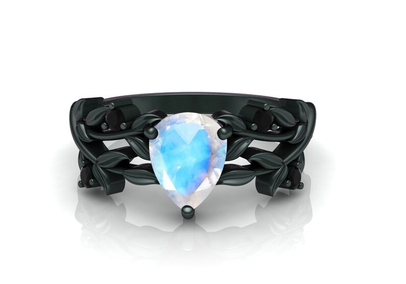 Vintage Pear Shaped Moonstone Engagement Ring Set Rose Gold Unique Solitaire Engagement Ring Turquoise Wedding Band Bridal Set Anniversary Www Arslan Av Tr